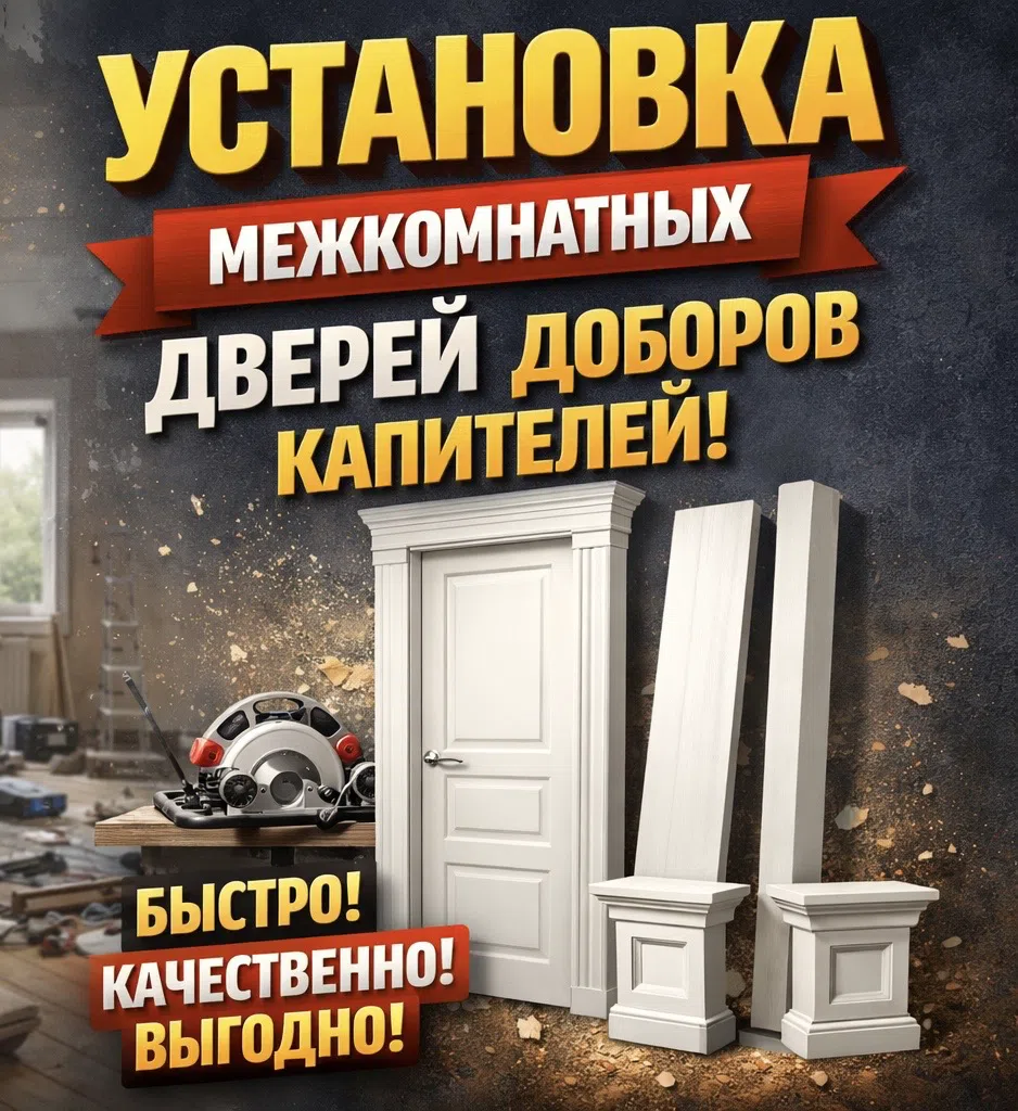 Профессионально устанавливаю межкомнатные двери, доборы, капители, наличники, порталы. Приезжаю строго в оговоренное время, а не через неделю! Работу выполняю с помощью дорогостоящего профессионального инструмента.