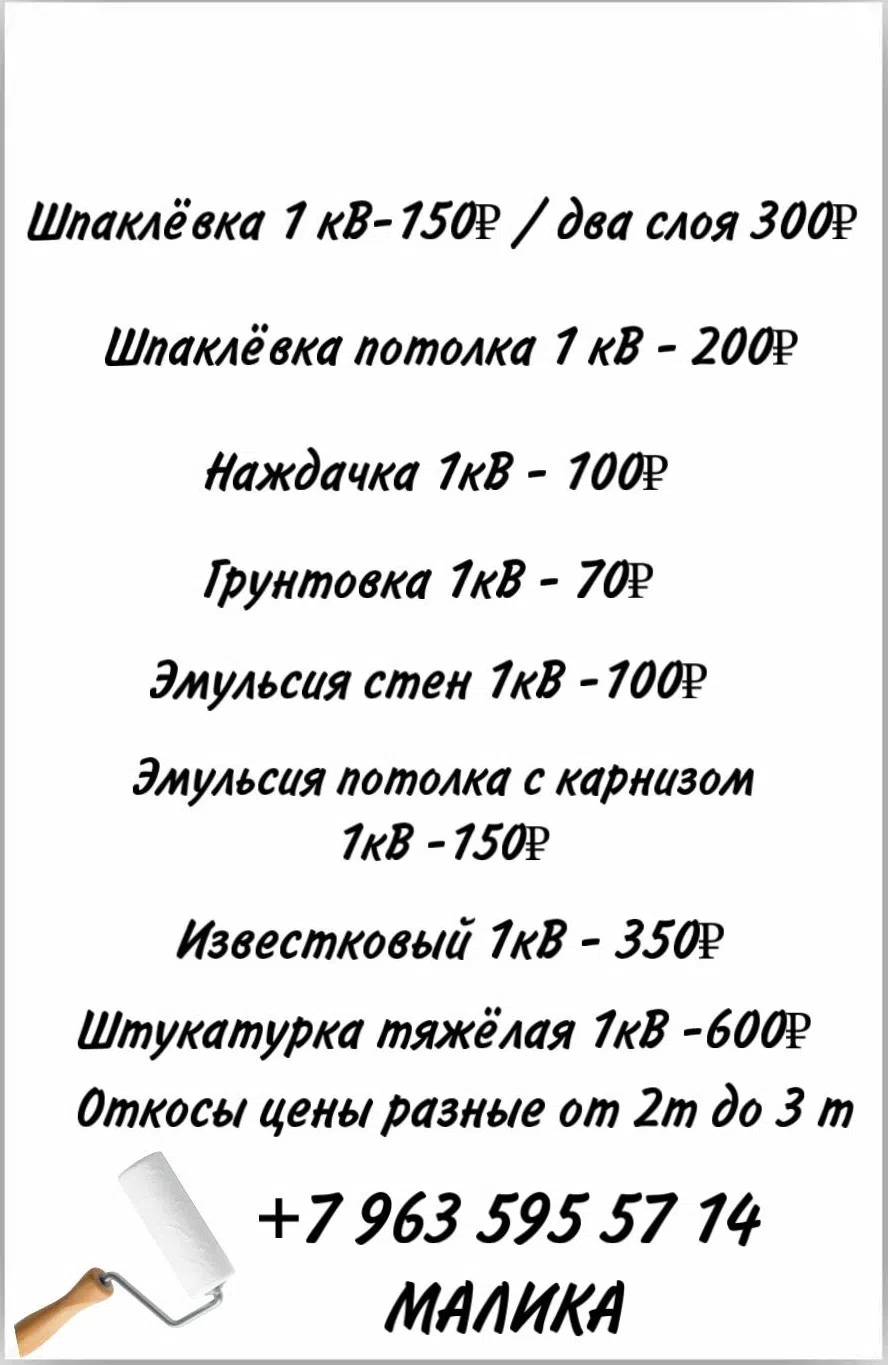 Шпаклевка, Наждачка, Грунтовка, Эмульсия стен, Известковый, Откосы